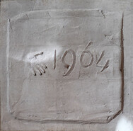Signature “KINGMA” engraved on the top and “1964” below, in the concrete.