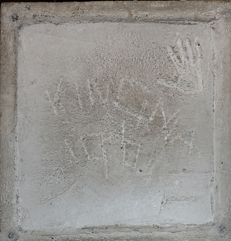 Signed and dated “KINGMA 1961” in the concrete underneath, next to the handprint of one of Paul Kingma’s children.