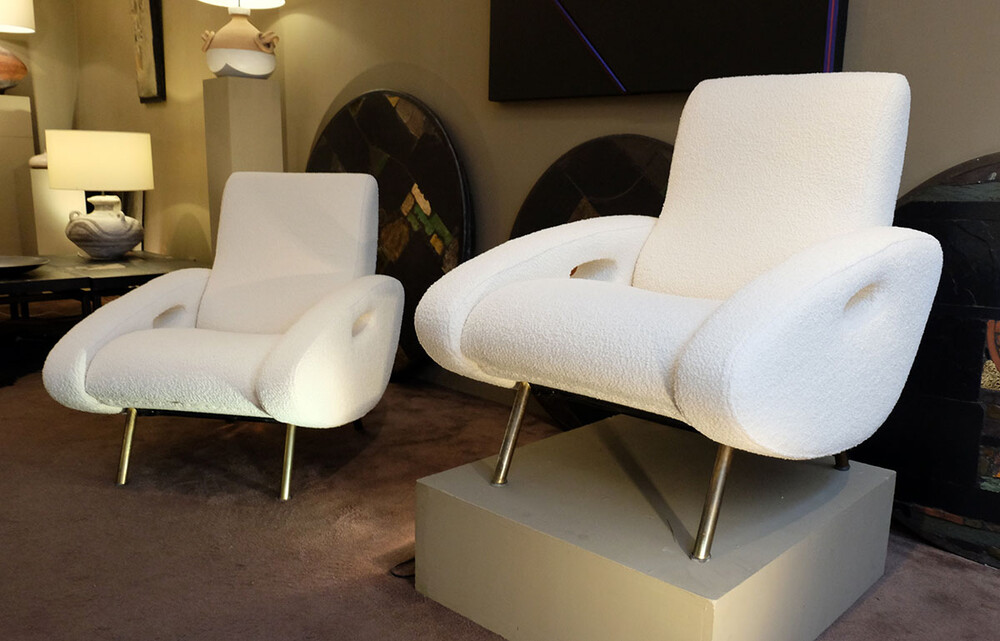 foam and upholstery fully renovated with a “Bisson Bruneel” Bergamo cream-coloured fabric.