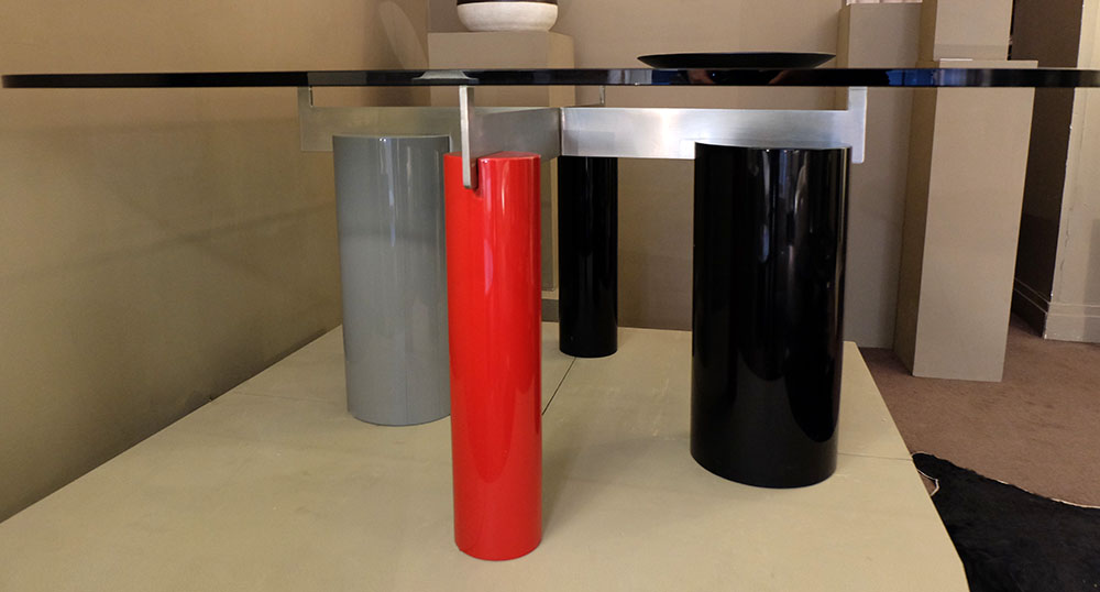 -Vibrant, colored lacquered wood legs (black, gray, red) for an unexpected touch.