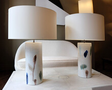 -Rare find: Bruno Gambone's glazed ceramic tubular lamps, true collector's items.