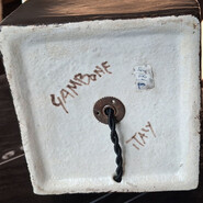 Rare black glazed stoneware lamp in a cubic form topped with a neck featuring white striated patterns on two opposite sides.signed “BRUNO GAMBONE ITALY” at the back