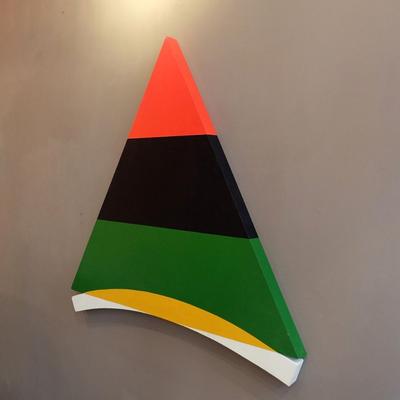 "triangle polychrome" Acrylique sur bois entoilé signée au dos 98 x 98 cm – prof. : 5 cm —– Acrylic painting – canvas on wood – signed at the back 38.5' x 38.5' – depth : 2'